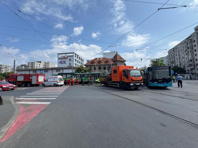 UPDATE – ”La data de 31 iulie a.c., în jurul orei 10:49, Brigada Rutieră a fost sesizată prin apel 112 cu privire la faptul că la intersecţia dintre Calea 13 Septembrie şi şos. Progresului din Sectorul 5 s-a produs un accident de circulaţie în care două vehicule din cadrul STB au fost implicate”, anunţă Brigada de Poliţie Rutieră.