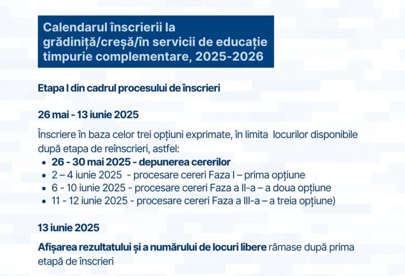 Prima etapă a înscrierilor: 26 mai – 13 iunie 2025