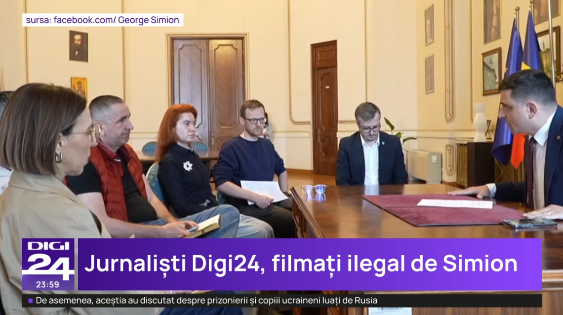 George Simion a publicat luni seara o filmare făcută fără acordul jurnaliștilor de la Digi 24, când aceștia s-au dus la biroul său de la Senat pentru a discuta formatul dezbaterii televizate la care liderul extremist ar fi trebuit să participe.