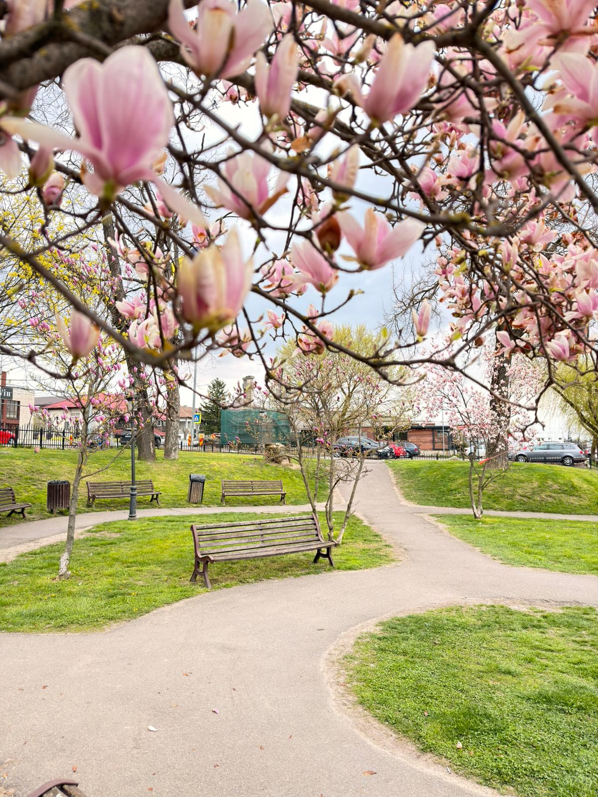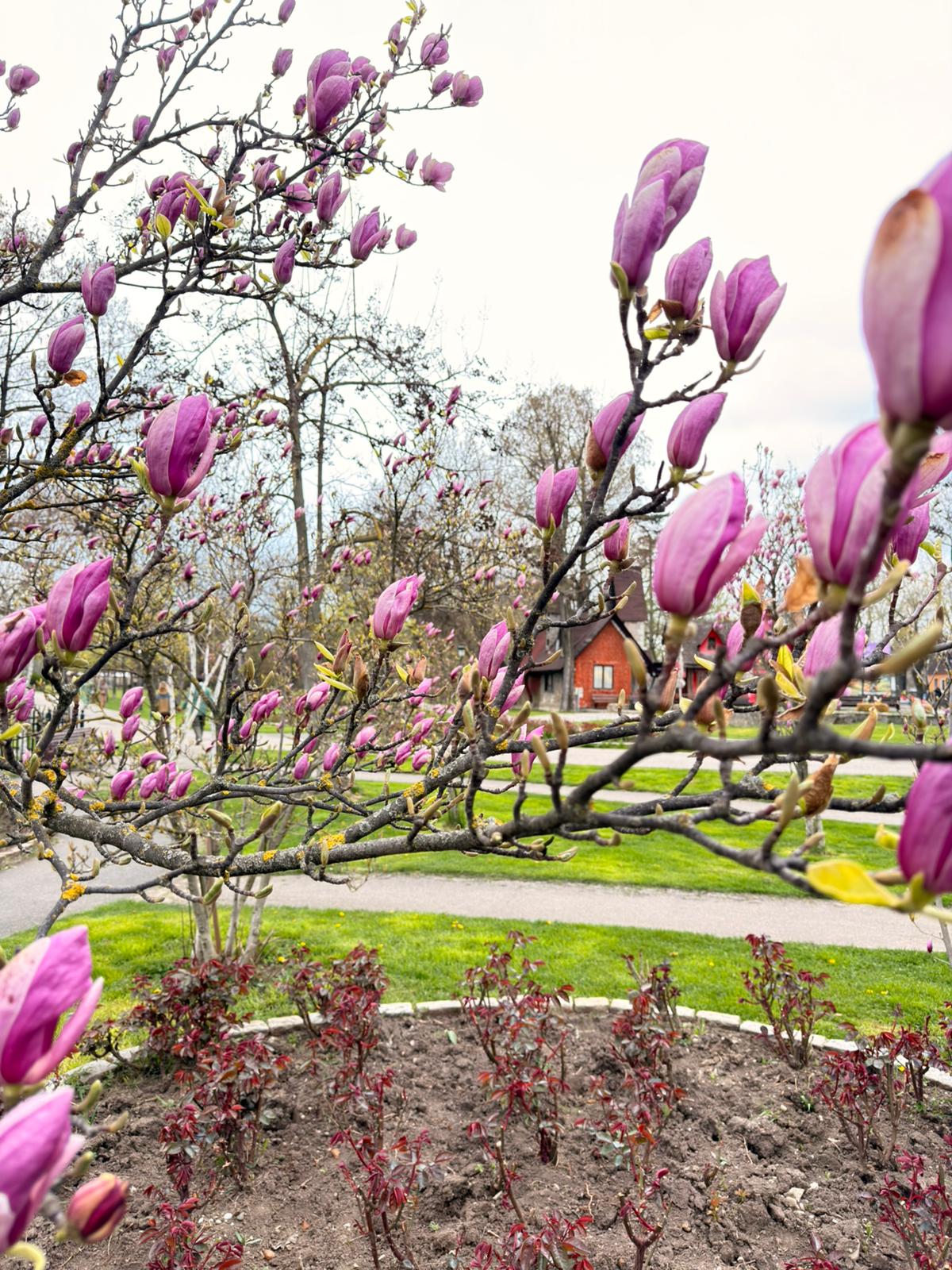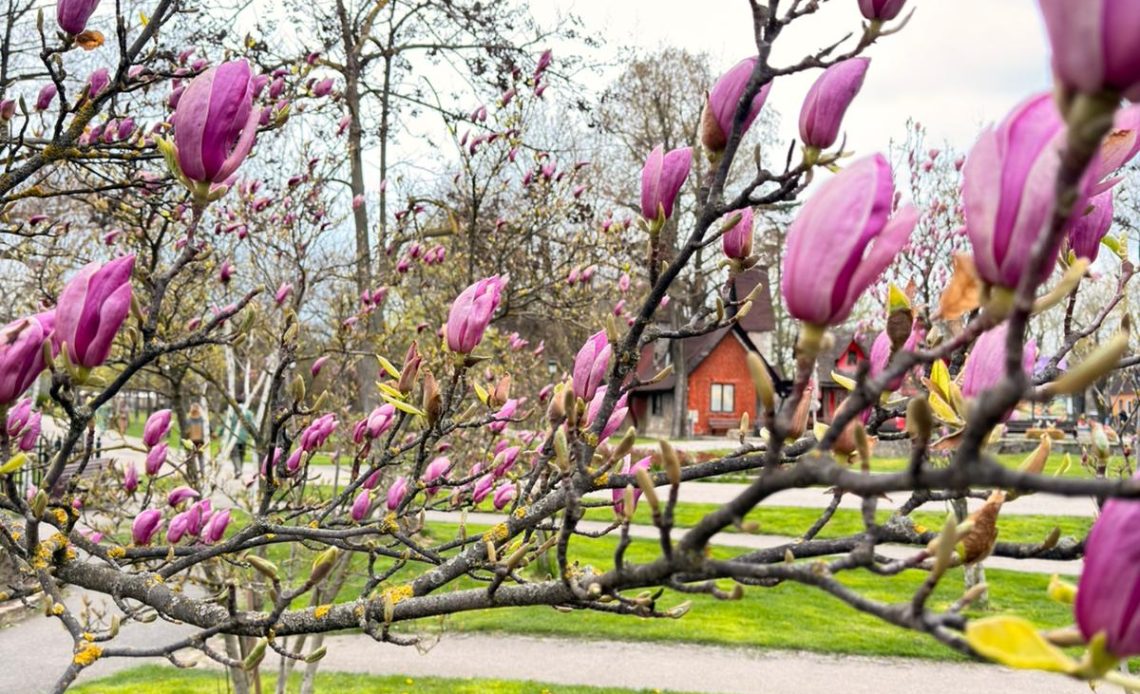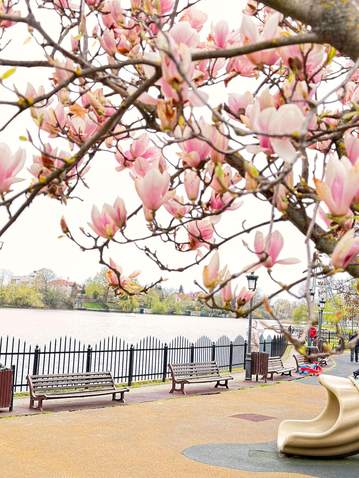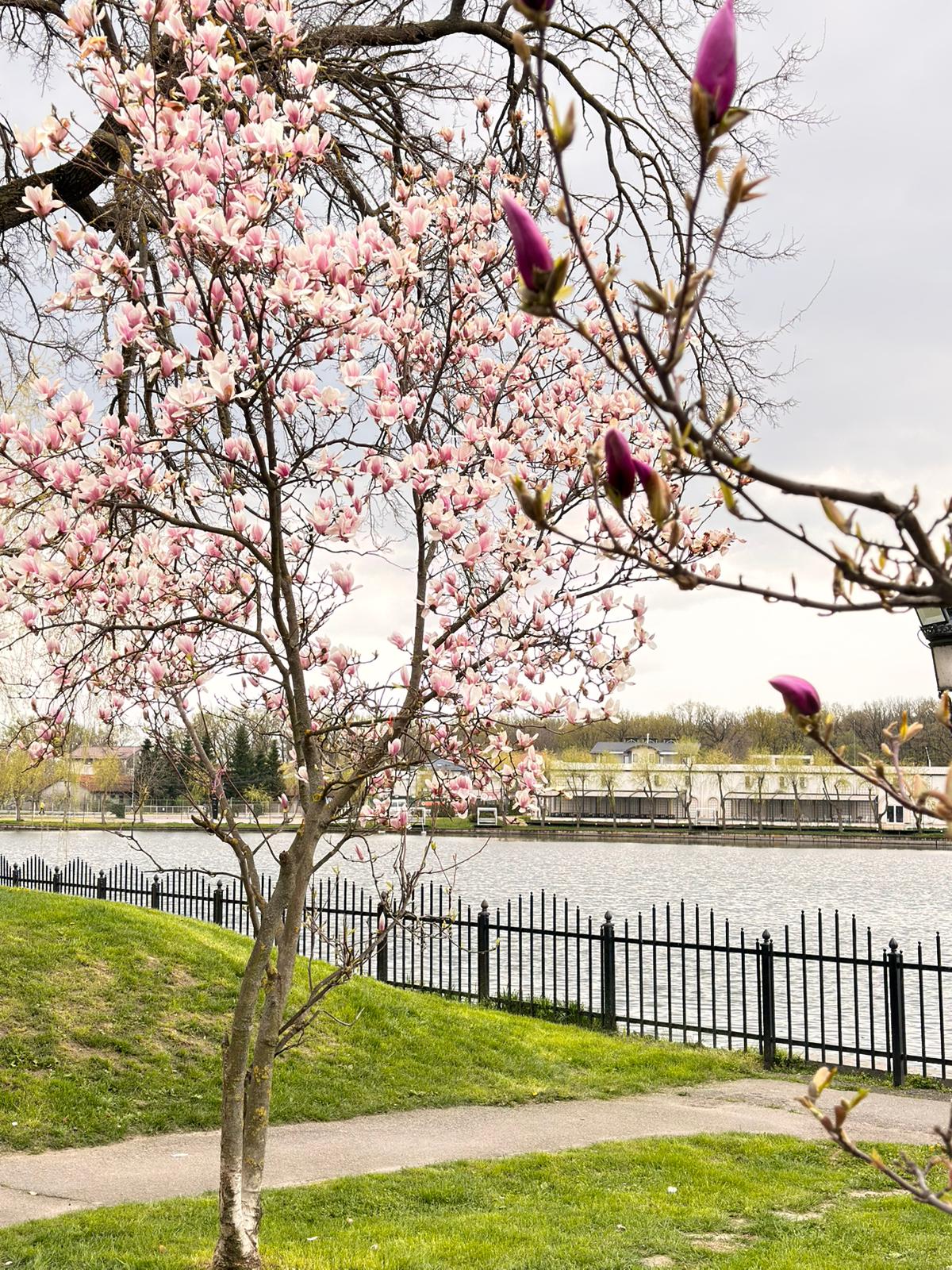 Lunea aduce liniște și culoare în parcul Mogoșoaia, unde magnoliile sunt în plin spectacol. Aerul este proaspăt, iar aleile devin locul perfect pentru o plimbare relaxantă.