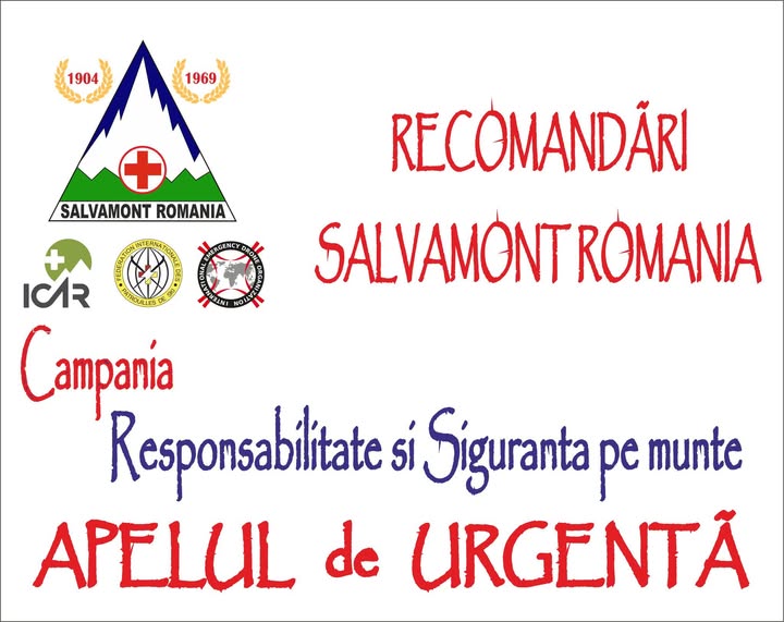 Nu uitați, echipele Salvamont sunt singurele structuri care dețin competența legală, personal pregătit profesional și atestat pentru a interveni în soluționarea accidentelor montane în care sunt implicate persoane cu afecțiuni medicale sau traumatice. Apelați cu încredere la prietenii Dumneavoastră de nădejde de pe cărările munților – SALVAMONT România !