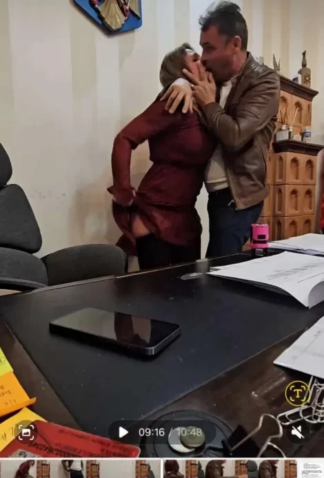 Deși din fotografii pare că doamna e agresată sexual — și poate că a și fost fix în acel moment, în sensul că primarul dornic voia să o aibă pe loc, în biroul său —, trebuie să știți că zbaterile ei sunt doar pentru că se temea, doamna, să nu fie prinși de cineva. În fapt, relația de amantlâc durează de circa cinci ani.