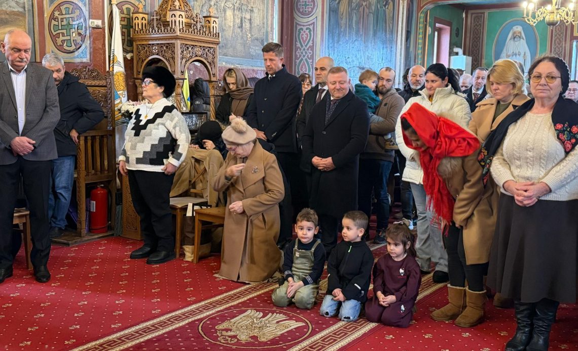 La slujba de astăzi au venit familii, copii de toate vârstele, bunici, o comunitate frumoasă, unită – am participat la Sfânta Liturghie alături de primarul Ilie Elefterie și de primarul localității Glina, Răzvan Tudor.